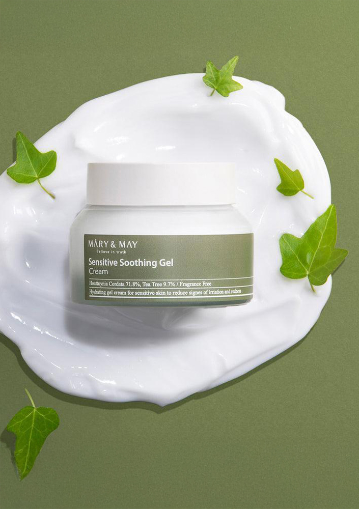 Η Mary & May Sensitive Soothing Gel Blemish Cream εμπλουτισμένη με 71,8% Houttuynia Cordata και 9,7% εκχύλισμα τεϊόδεντρου είναι μια ημιδιαφανής κρέμα τύπου gel που καταπραϋνει άμεσα το ερεθισμένο και ευαίσθητο δέρμα. Η φόρμουλα με εκχύλισμα Houttuynia Cordata και εκχύλισμα τεϊόδεντρου, ηρεμεί και δροσίζει άμεσα την ερεθισμένη επιδερμίδα.