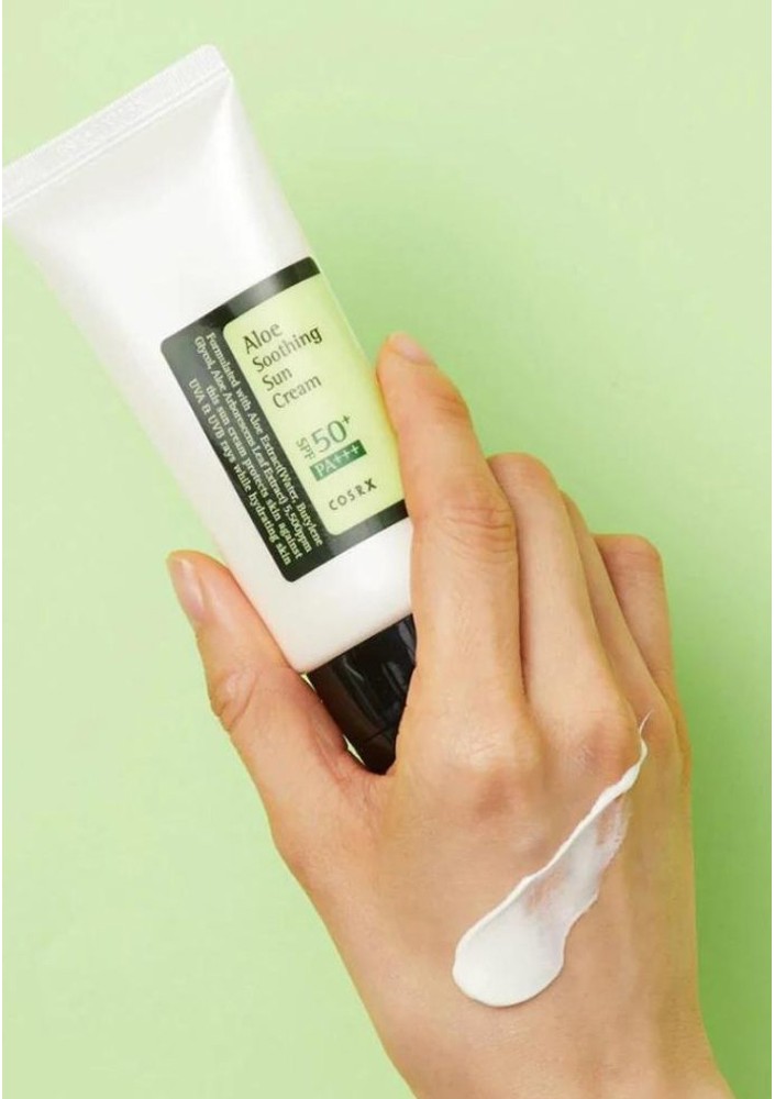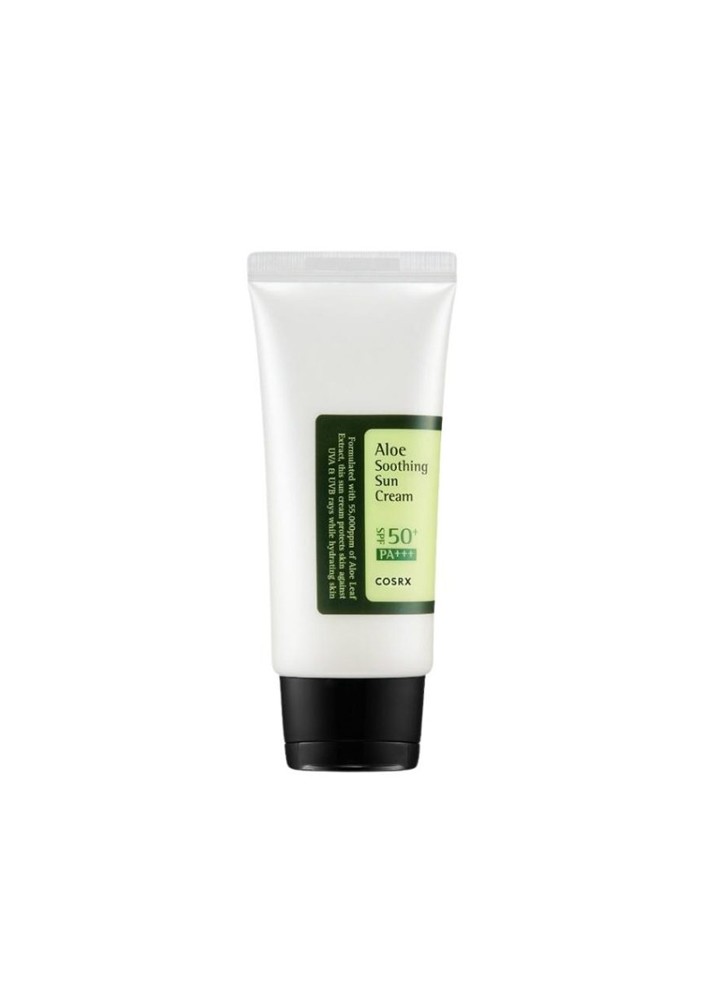 Το Cosrx Aloe Soothing Sun Cream SPF50+ PA+++ (50ml) είναι ένα αντηλιακό καθημερινής χρήσης που συνδυάζει την υψηλή προστασία από τις ακτίνες UVA και UVB με τις καταπραϋντικές ιδιότητες της αλόης. Είναι γνωστό για την ελαφριά του υφή που θυμίζει ενυδατική κρέμα και δεν αφήνει λευκά υπολείμματα στην επιδερμίδα.